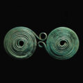 Beschreibung: Fibel aus vierkantigem Draht mit zwei gegenständig aufgerollten Spiralscheiben. Zwischen den Spiralen sitzt eine Achterschleife. Aus dem einen Spiralauge setzt sich der Draht als Nadel fort. Ein hakenförmig gebogenes Drahtende am anderen Spiralauge bildet den Nadelhalter. Fibeln wie diese waren in der jüngeren Bronzezeit bis zur älteren Eisenzeit in Südostdeutschland, Österreich, Tschechien, der Slowakei, Polen, Italien bis hin nach Griechenland verbreitet.
