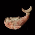 Erhaltung: Roter Überzug stellenweise verrieben. Die linke Seitenflosse und die Sichel der Schwanzflosse sind fast unsichtbar wieder angesetzt. Insgesamt sehr eindrucksvoll erhalten.